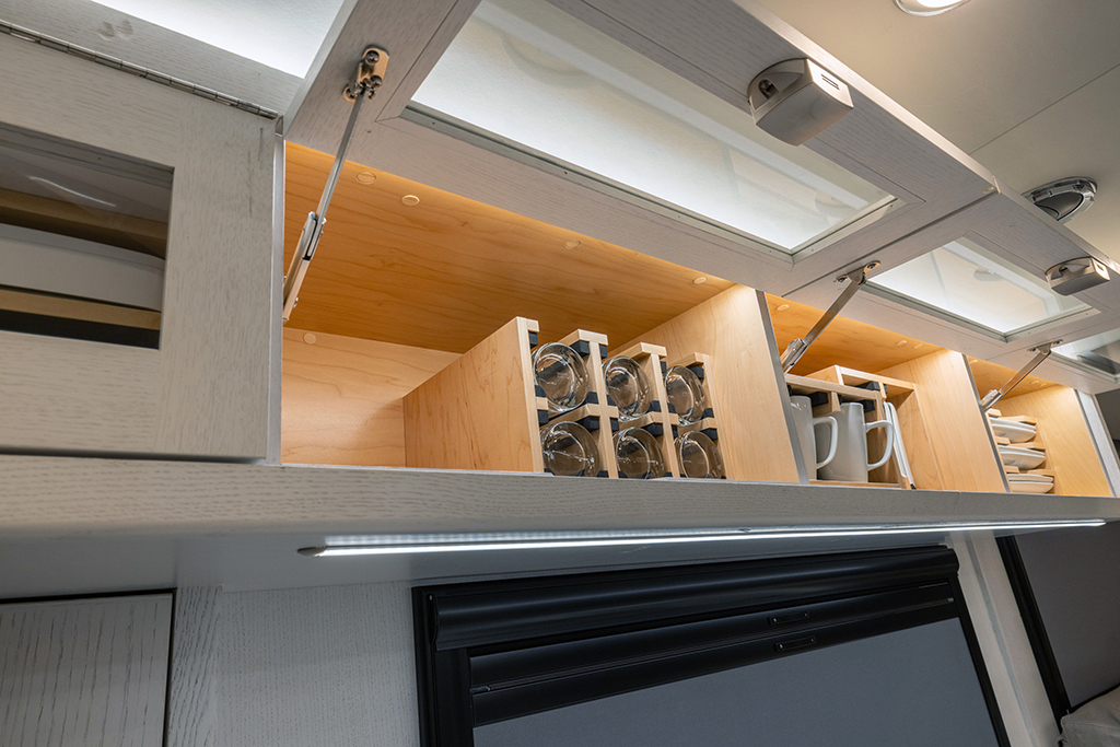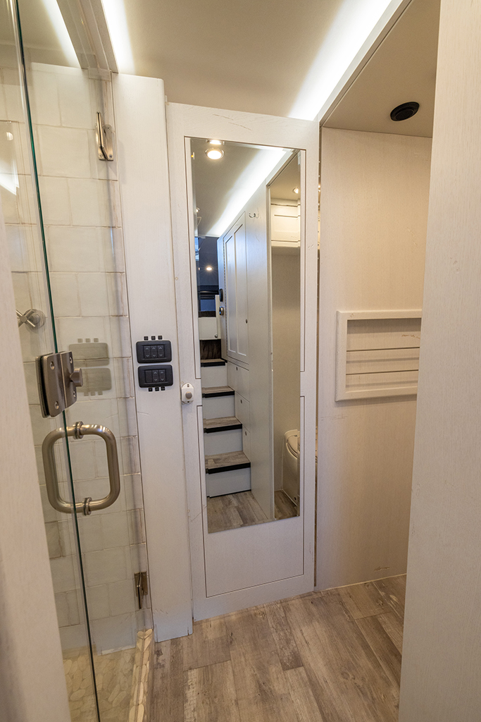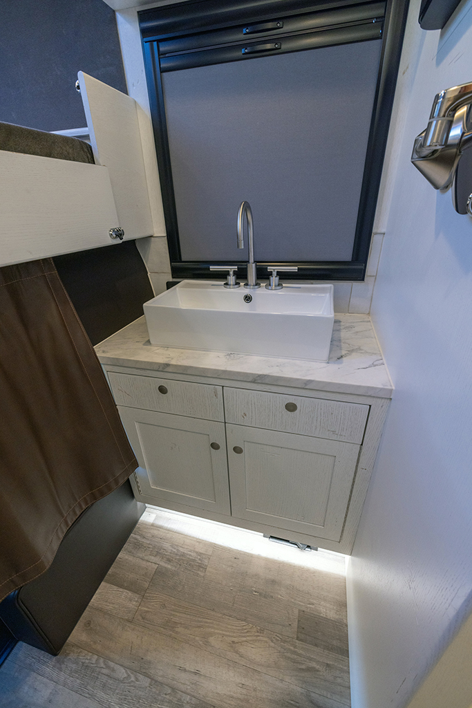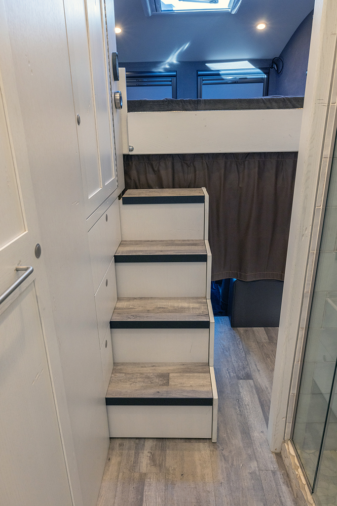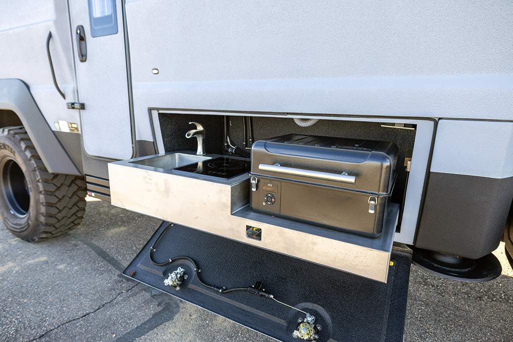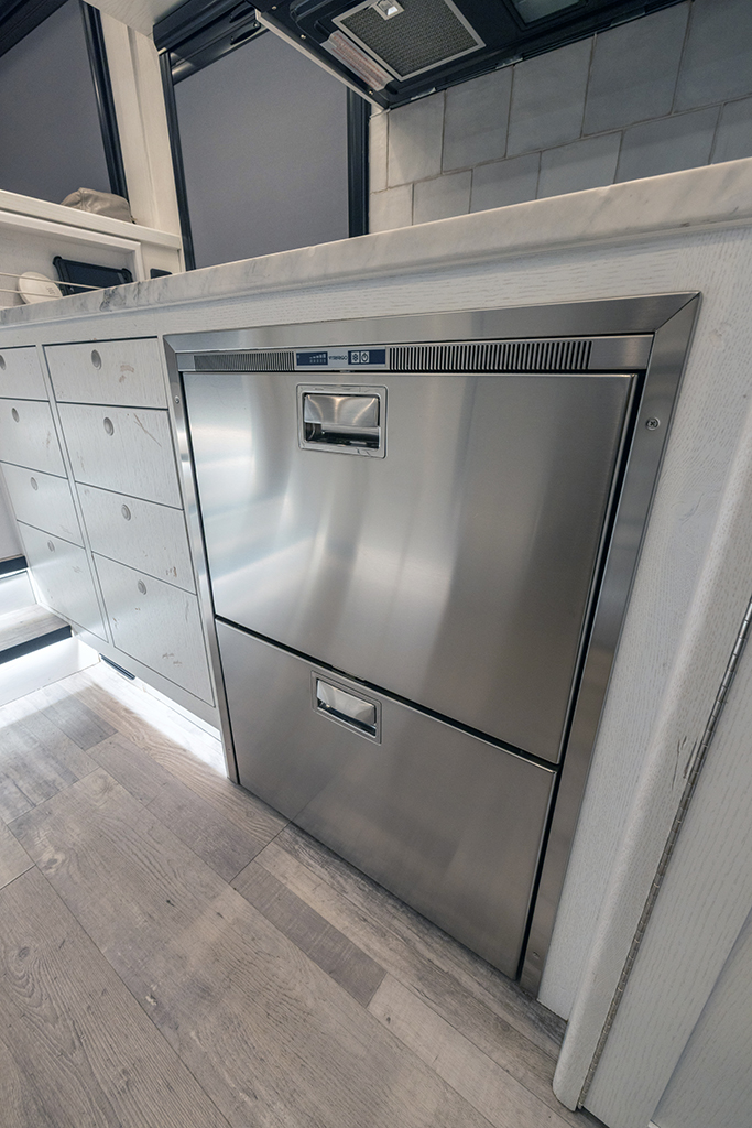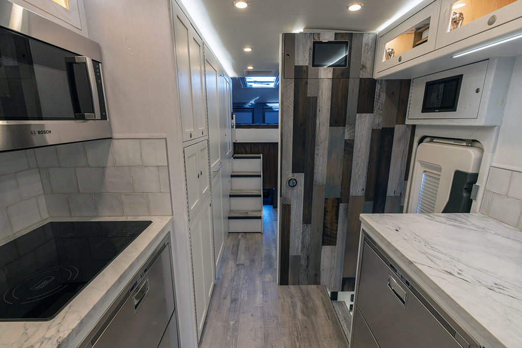 This 2020 HD-005 is ready for it’s new home! The luxury interior of this EarthRoamer features solid wood cabinetry and feels like home on the inside with a large dinette with wraparound seating, dual refrigerator/freezers, and a three burner electric induction cooktop.