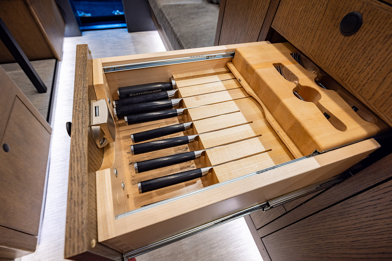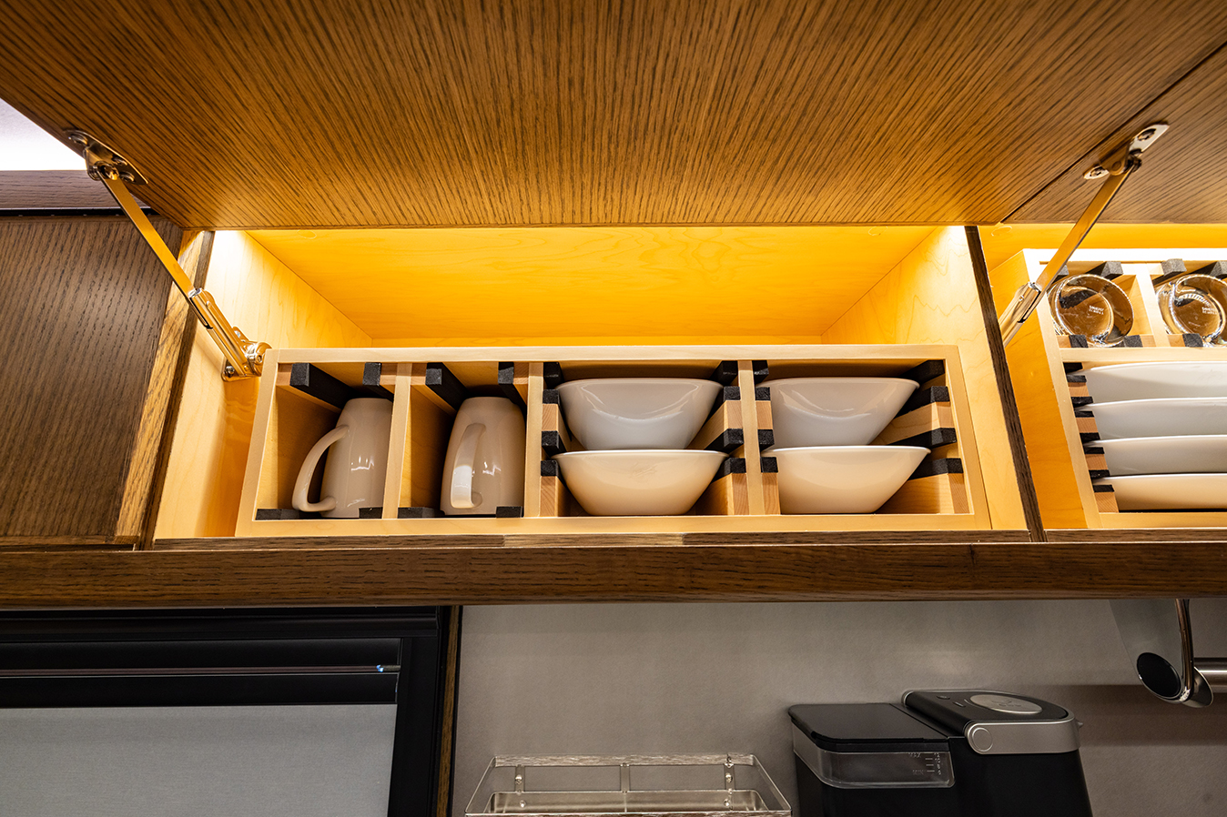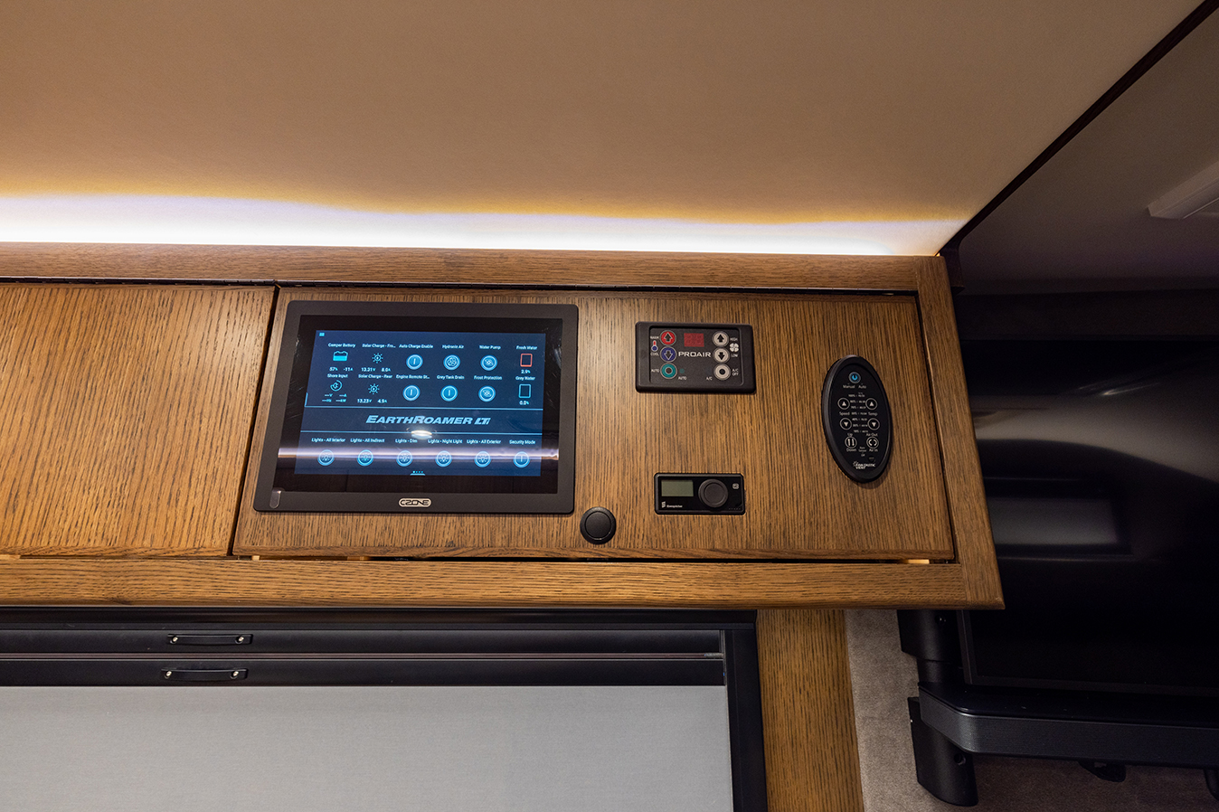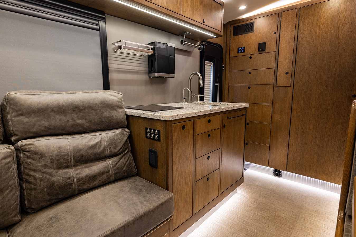 This 2020 XV-LTi is ready for it’s new home! The luxury interior of this EarthRoamer features Glazed Oak cabinetry laid out in the Breckenridge floor plan. LTi #10 feels like home on the inside with a 12-piece set of EarthRoamer nesting induction cookware, wine rack, and an electric induction cooktop.