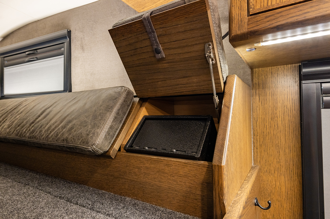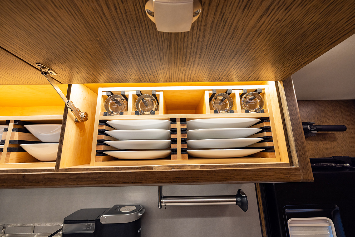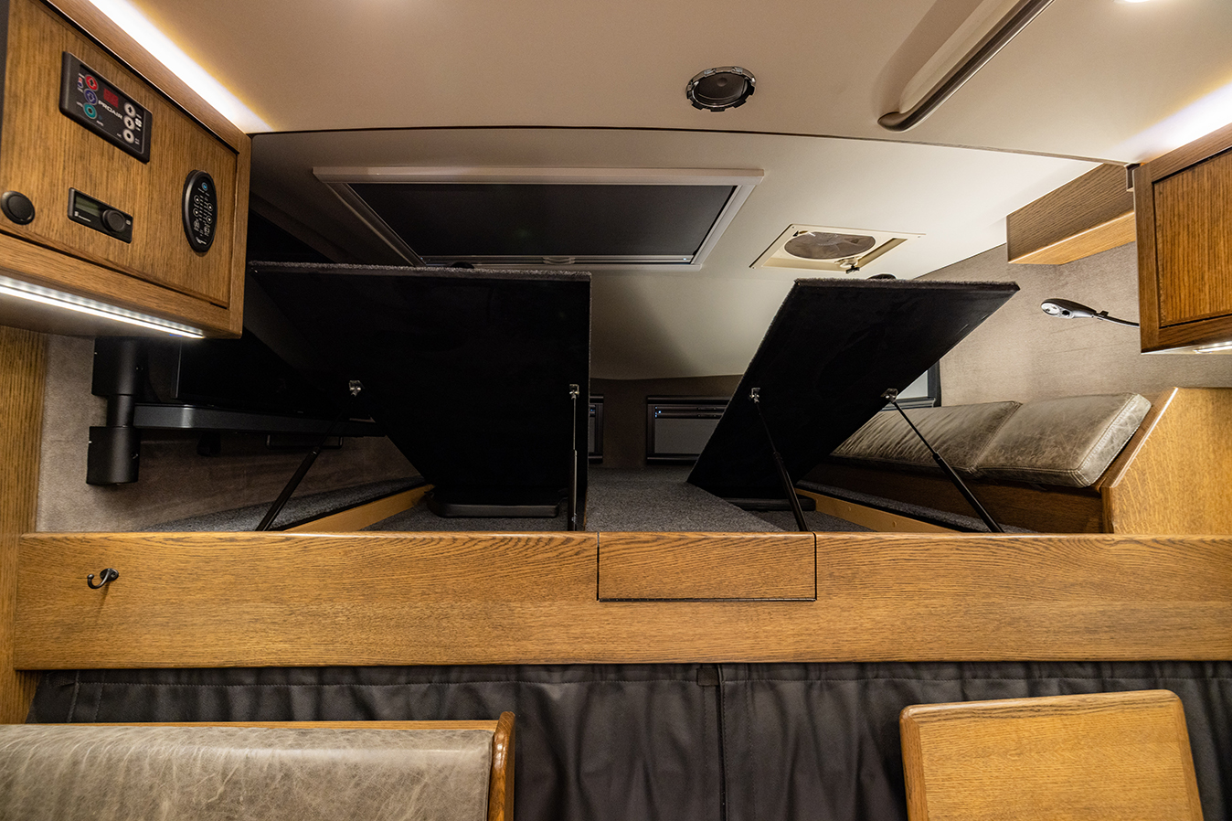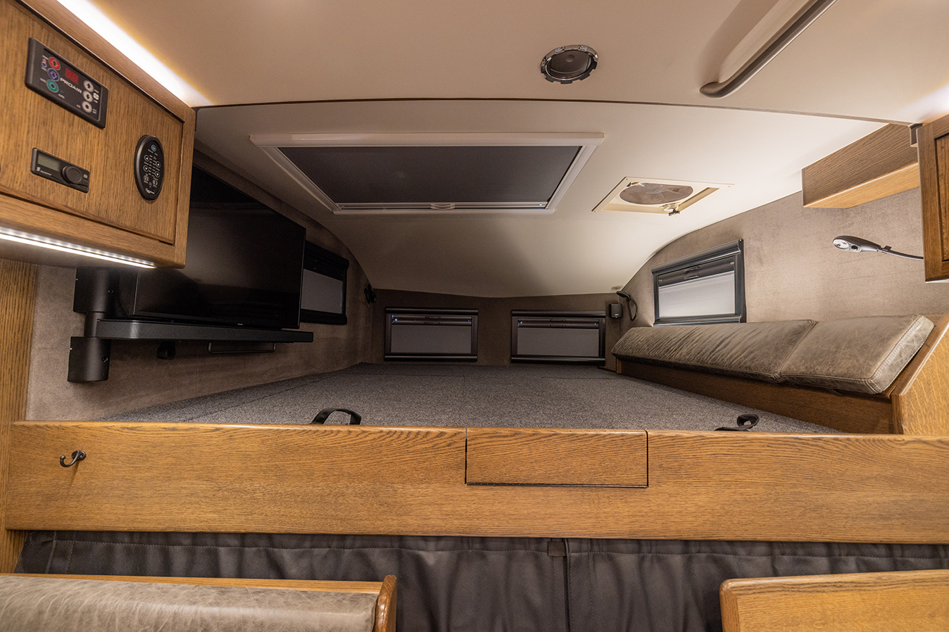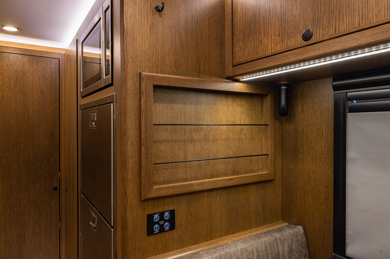 This 2020 XV-LTi is ready for it’s new home! The luxury interior of this EarthRoamer features Glazed Oak cabinetry laid out in the Breckenridge floor plan. LTi #10 feels like home on the inside with a 12-piece set of EarthRoamer nesting induction cookware, wine rack, and an electric induction cooktop.