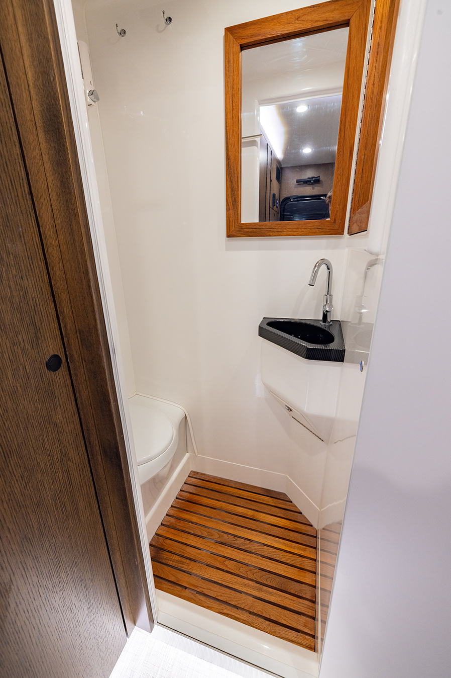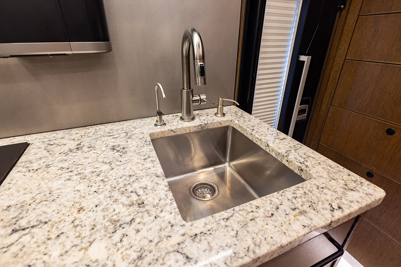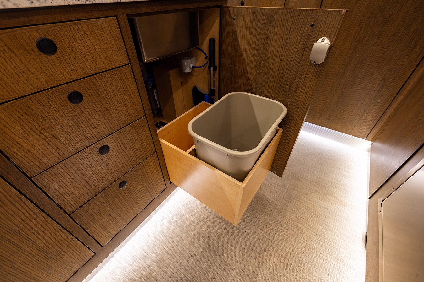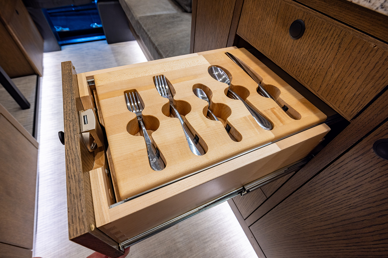 This 2020 XV-LTi is ready for it’s new home! The luxury interior of this EarthRoamer features Glazed Oak cabinetry laid out in the Breckenridge floor plan. LTi #10 feels like home on the inside with a 12-piece set of EarthRoamer nesting induction cookware, wine rack, and an electric induction cooktop.