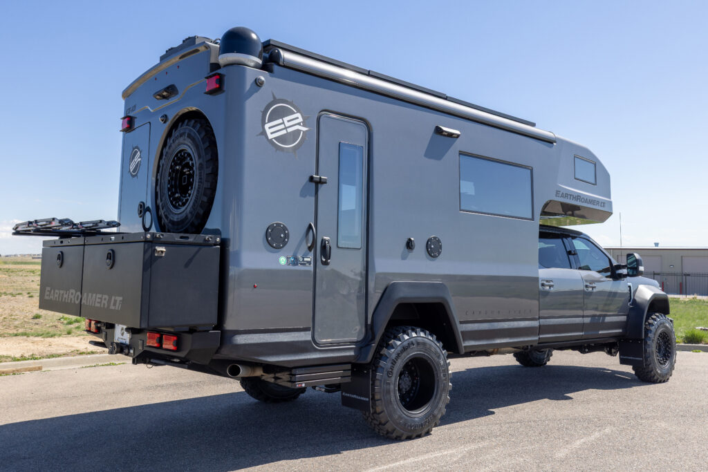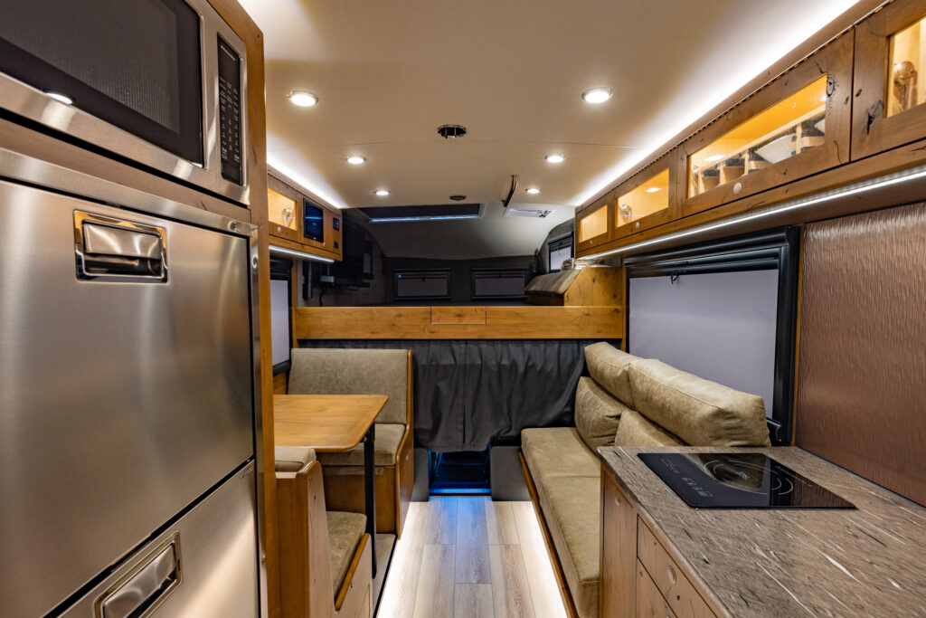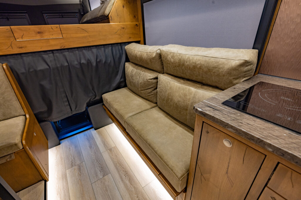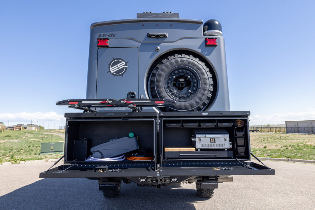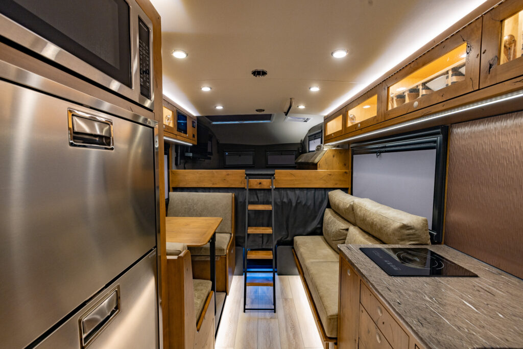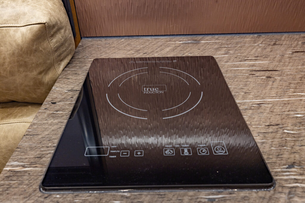This 2021 XV-LTi is ready for it’s new home! The luxury interior of this EarthRoamer features Glazed Fawn Alder cabinetry laid out in the Breckenridge floor plan. LTi #28 feels like home on the inside with a central vacuum system, a 12-piece set of EarthRoamer nesting induction cookware, wine rack, and an electric induction cooktop.